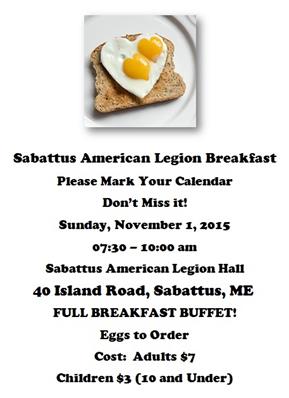 Sabattus Legion Hall Volunteers Welcome! All you can eat buffet! |