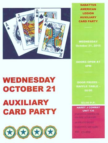 American Legion Auxiliary will hold their annual card party on Wed. Oct