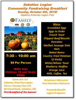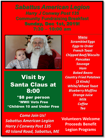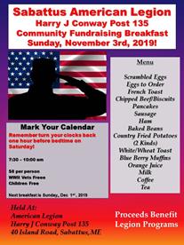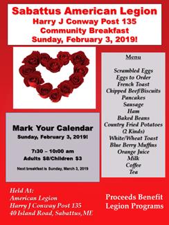 Sabattus Legion Community Breakfast Cost: 8 per