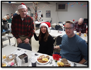 person Free for: WWII Veterans Children 10 and Under SANTA ARRIVES AT 8AM! Kitchen Volunteers please arrive by 6:00 am Wait Volunteers please arrive by 6:30 am FMI: Joseph