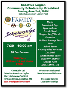 Sabattus Legion Community Scholarship Breakfast Cost: 8 per